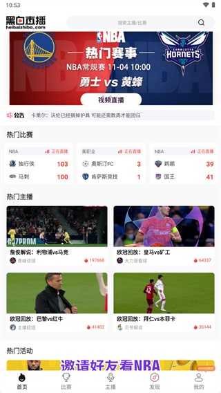 黑白直播app是一個為粉絲人群給予比賽.新聞資訊及其網路服務的服務平臺。