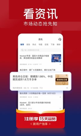 3、拥有丰富优质的资讯文章,权威深刻的分析报告,助您了解市场,发现商机。